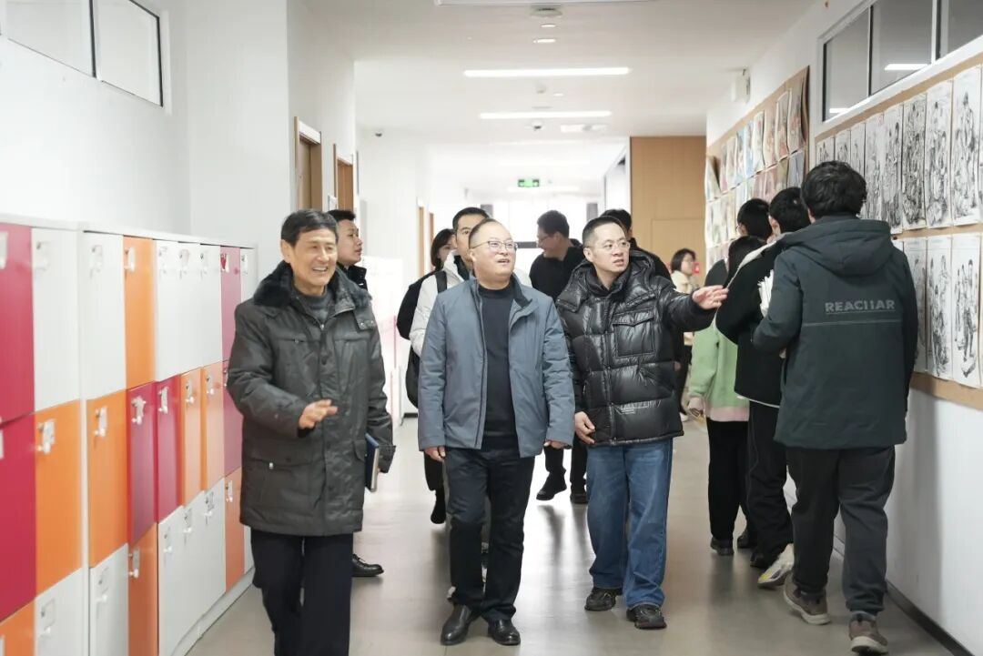 在校长翁国瑞和副校长孙汉钊的陪同下,来宾们参观了学校的教学楼设施,深入了解了我校的办学特色与课程方向。