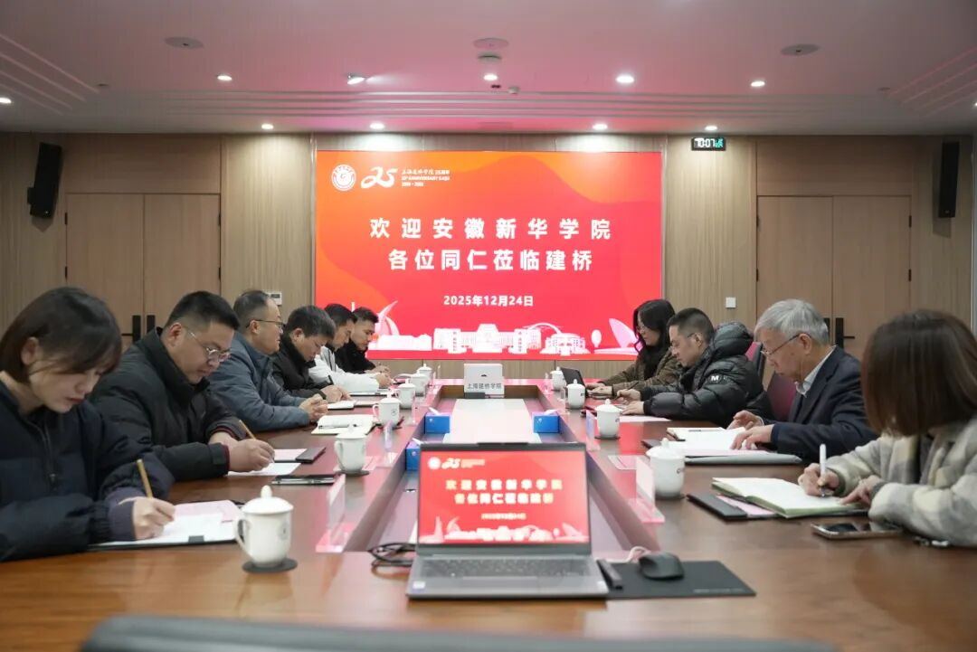 2025年12月24日上午,上海建桥融高校园内迎来远道而来的教育同仁。安徽新华学院副校长李军带领的教师团队抵达上海建桥融高进行参观交流。
