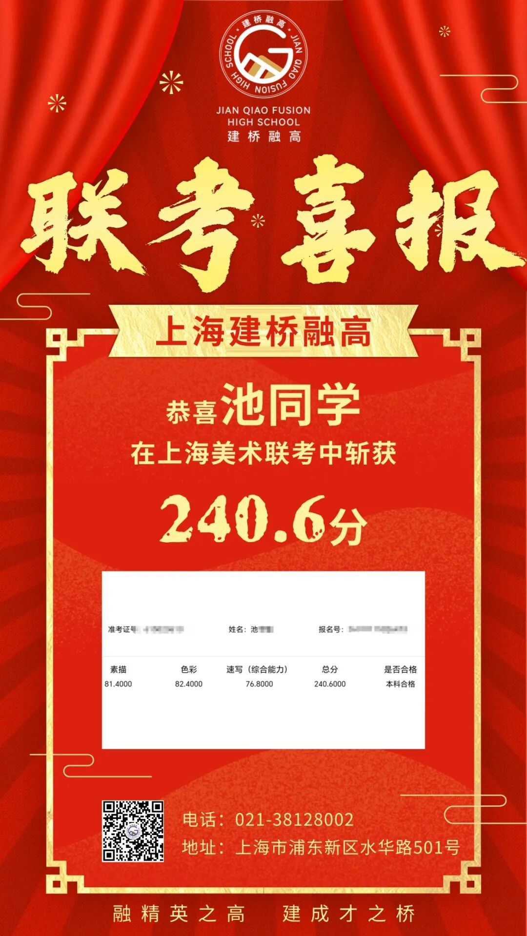 2026年上海市美术与设计类专业统考成绩近日揭晓,上海建桥融高学子再次交出了一份亮眼的成绩单。更值得关注的是,这已经不是学校第一次取得如此优异的成绩。